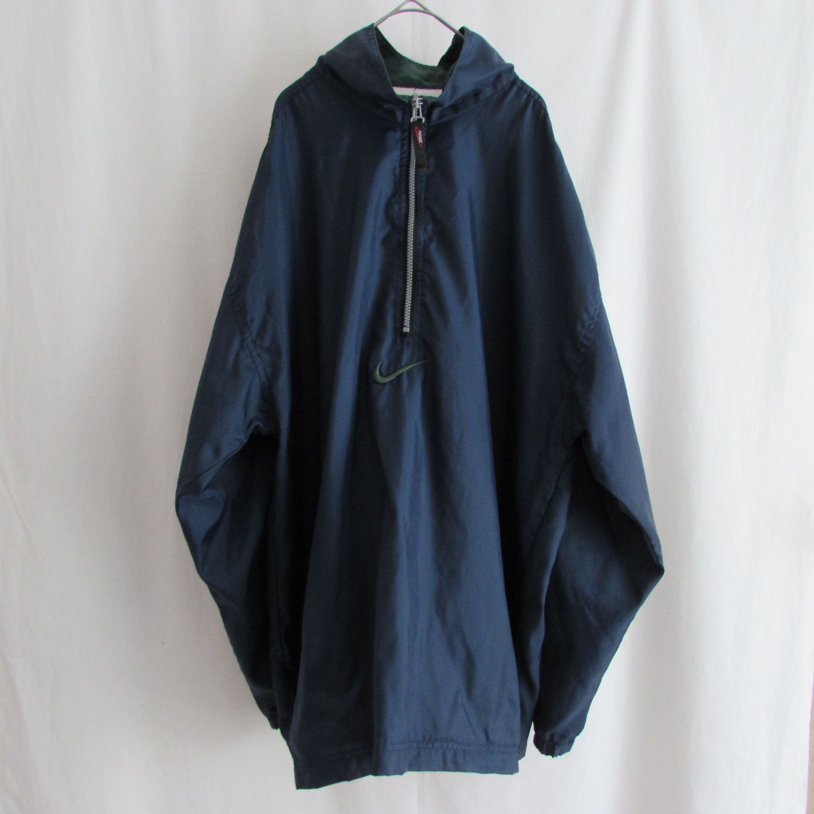 - メンズ > ジャケット・アウター > ナイキ 白タグ ハーフジップ リブライン スウッシュ ナイロンジャケット Lサイズ】古着 ナイロンジャケット NIKE 白タグ 90s ハーフジップ 刺繍