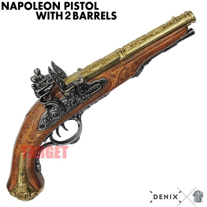 アンティークモデルガン ナポレオンフリントロックピストル 木製 モデルガン ☆DENIX フリントロック ダブルバレルピストル ナポレオンモデル